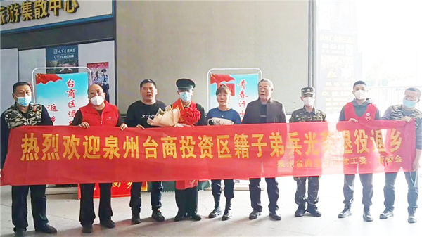 據了解,皮佳銘和許升隆分別在福州武警支隊服役5年和2年圓滿完成服役使命,祝愿兩名戰友退役不褪色,返鄉立新功。 泉州市 從9月1日起,泉州臺商投資區籍秋季入伍的子弟兵相繼光榮退役返鄉。泉州臺商投資區民生保障局、區臺胞臺企服務中心組織了10名志愿者和3輛愛心接送車輛,在退役軍人返鄉到站的動車站開設接待服務點,用心用情為返鄉退役軍人送上家鄉人民的殷切關懷和誠摯歡迎。