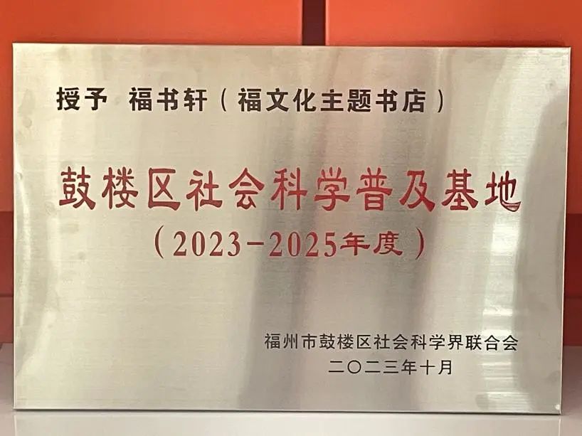 近日,福州市鼓樓區(qū)社會(huì)科學(xué)界聯(lián)合會(huì)授予福書軒(福文化主題書店)“2023-2025年度鼓樓區(qū)社會(huì)科學(xué)普及基地”。