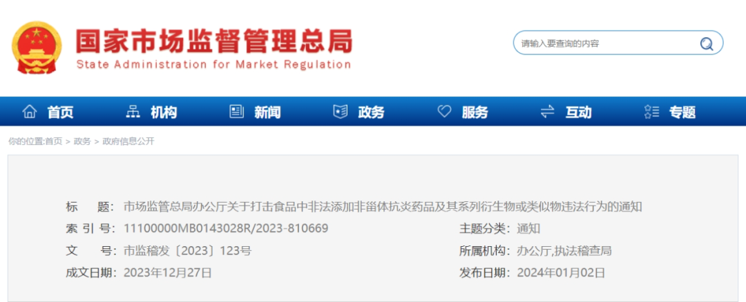 市場(chǎng)監(jiān)管總局辦公廳關(guān)于打擊 食品中非法添加非甾體抗炎藥品及其系列衍生物或類似物 違法行為的通知 各省、自治區(qū)、直轄市和新疆生產(chǎn)建設(shè)兵團(tuán)市場(chǎng)監(jiān)管局(廳、委): 近年來(lái),宣稱功能食品非法添加藥品、藥品衍生物或類似物的違法案件時(shí)有發(fā)生,危害人民群眾身體健康。近期,總局組織山東省市場(chǎng)監(jiān)管部門(mén)查辦“青島尚醫(yī)制藥有限公司涉嫌生產(chǎn)經(jīng)營(yíng)添加藥品的食品案”,出具了有毒有害專家認(rèn)定意見(jiàn)。現(xiàn)將《食品中非法添加非甾體抗炎藥物的有毒有害專家認(rèn)定意見(jiàn)》(見(jiàn)附件)發(fā)給你們,可作為案件查辦中甄別有毒有害物質(zhì)成分、實(shí)施定罪量刑的參考。 市場(chǎng)監(jiān)管部門(mén)應(yīng)當(dāng)從速?gòu)膰?yán)查處此類案件,依法吊銷(xiāo)許可并處罰相關(guān)責(zé)任人;涉嫌犯罪的,要及時(shí)移送公安機(jī)關(guān)處理。 附件:食品中非法添加非甾體抗炎藥物的有毒有害專家認(rèn)定意見(jiàn) 市場(chǎng)監(jiān)管總局辦公廳 2023年12月27日 (此件公開(kāi)發(fā)布) 附 件 食品中非法添加非甾體抗炎藥物的有毒有害專家認(rèn)定意見(jiàn) 2023年11月24日,中國(guó)計(jì)量科學(xué)研究院受?chē)?guó)家市場(chǎng)監(jiān)督管理總局執(zhí)法稽查局委托,組織專家對(duì)食品中非法添加非甾體抗炎藥的有毒有害性進(jìn)行評(píng)估、認(rèn)定。 專家組聽(tīng)取了匯報(bào),經(jīng)研究,形成認(rèn)定意見(jiàn)如下: 一、非甾體抗炎藥具有解熱、鎮(zhèn)痛、消炎等作用,包括但不限于: 1.以乙酰苯胺為母核的藥物,如對(duì)乙酰氨基酚、非那西丁等; 2. 以水楊酸為母核的藥物,如阿司匹林、貝諾酯、二氟尼柳等; 3. 以吡唑(二)酮為母核的藥物,如保泰松、氨基比林、安替比林、安乃近、非普拉宗等; 4. 以苯并噻嗪為母核的藥物,如吡羅昔康、美洛昔康等; 5. 以二芳基芳雜環(huán)為母核的藥物,如塞來(lái)昔布、羅非昔布等; 6. 以芳基甲酸、芳基乙酸、芳基丙酸為母核的藥物,如雙氯芬酸、布洛芬、吲哚美辛、萘普生、甲氯芬酸等; 7. 其他,如尼美舒利、阿扎丙宗等。 二、依據(jù)《食品安全法》,食品不得添加藥物,而該類原料也從未獲得批準(zhǔn)作為食品添加劑或新食品原料,以及保健食品原料,因此,在食品中檢出上述非甾體抗炎藥,均屬于非法添加。 以上藥物及其系列衍生物或類似物具有相似/相同的作用,具有類似屬性和危害性。因此,添加有上述物質(zhì)的食品有對(duì)人體產(chǎn)生毒副作用的風(fēng)險(xiǎn)、影響人體健康,甚至可危害生命。 |