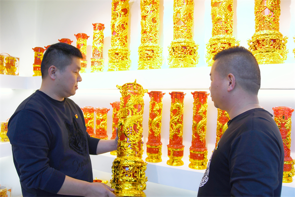 王志鵬(左)兄弟正在查看研發的新產品 “今年是龍年,我特意開發了新產品,現在十分暢銷。”看著自己的研究成果,王志鵬顯得十分高興。他說,環境一直在變,我必須要有創新思維,否則難以在市場上立足。為了研制新產品,他自學工板、自己創作、親自試驗。王志鵬回憶起來,仍然記得在部隊當班長時說過的話,做什么事都要以身作則,只有自己沖在最前面才能帶領更多的人沖鋒。 談及企業發展面臨的壓力,王志鵬直言,壓力常伴企業左右。“人無遠慮,必有近憂”,并認為“化解壓力一定要打好‘提前量’,就不會有措手不及的事情,就能度過各種危機。” 疫情期間,是企業經營最困難的時候。最少時公司只有1-2名工人,但兄弟倆仍堅持誠信經營的標準,答應的貨總是想方設法、加班加點送到。如今,王志鵬兄弟創辦的常光鴻運工貿有限公司高峰時期員工有近百人,全部是附近村莊留守中老年人。