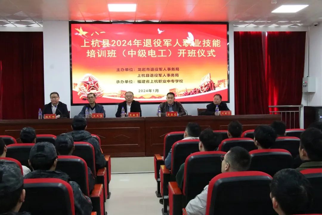 1月15日,由龍巖市退役軍人事務局、上杭縣退役軍人事務局主辦的2024年退役軍人職業技能培訓班(中級電工)在上杭縣職業中專學校開班。31名退役軍人參加培訓,上杭縣縣委副書記、副縣長范垂青出席開班儀式并講話。