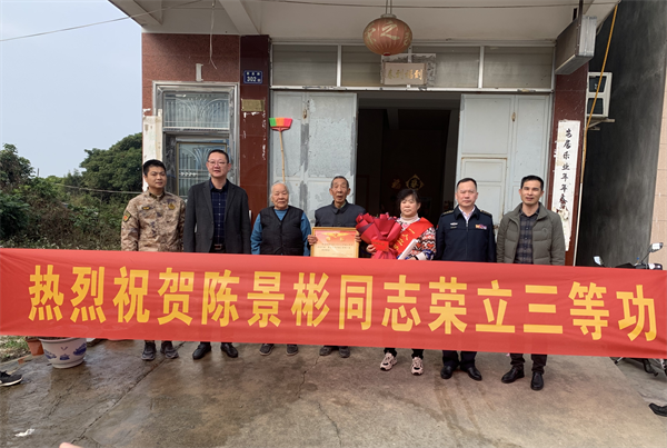 陳岱鎮(zhèn)南村沿途吸引了不少群眾駐足觀看,拍手稱贊。“陳景彬同志在2023年度工作中表現(xiàn)突出,榮立戰(zhàn)備訓(xùn)練三等功一次。特此喜報。恭喜!恭喜!”軍地領(lǐng)導(dǎo)向陳景彬家屬致以崇高的敬意和親切的慰問。陳景彬的爺爺陳太順自豪地向領(lǐng)導(dǎo)介紹,景彬從小就有軍旅夢,他懷揣著對軍營的向往,2017年9月入伍,現(xiàn)服役于武警某部特戰(zhàn)支隊,服役期間連續(xù)四年被評為“四有”優(yōu)秀個人。母親激動地說道:“這份喜報是我們最好的新年禮物”。