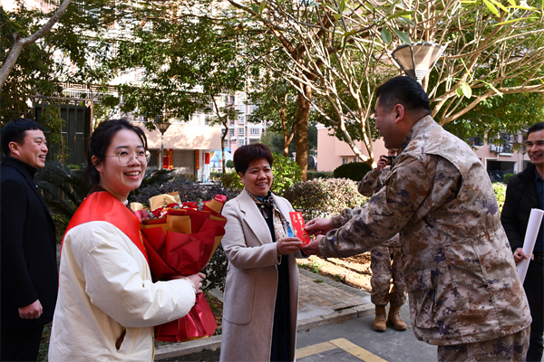 在云陵鎮(zhèn)渡頭嘉園,橫幅招展、鑼鼓喧天。軍地領(lǐng)導(dǎo)為三等功獲得者鄭歡騰家屬頒發(fā)立功喜報,贈送鮮花及慰問金。“我兒子很能吃苦,家里存放的榮譽(yù)證書有七八本。”談及兒子取得的榮譽(yù),母親張春梅臉上洋溢著滿臉笑容。
