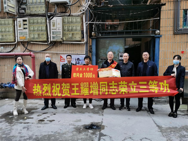 慰問組與王耀增父母合影 “現在政府送喜報儀式這么隆重,讓我們心里暖暖的。”接到立功喜報,王耀增父親高興地說道。 一人立功,全家光榮!2月2日,龍海區退役軍人事務局聯合石碼街道,敲鑼打鼓為榮立個人三等功的現役軍人王耀增家庭送去立功喜報。滿滿的送喜報儀式讓軍屬們倍感榮耀,軍屬們都說,感受到了實實在在的尊崇,心里暖暖的。 王耀增,2012年考入海軍大連艦艇學院,入伍已有11年。作為部隊技術骨干,他敢于擔當,高標準完成了上級賦予的各項任務,多次受到部隊表揚和嘉獎;曾參加海空聯合戰備警巡和聯合演訓、紀念抗戰勝利70周年閱兵活動等。2023年12月,因成績突出,榮立戰備訓練三等功、“四有”優秀軍官。