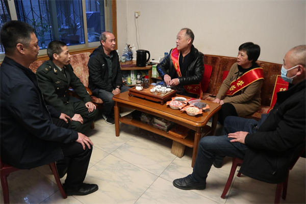 慰問組與王耀增父母座談 一支鑼鼓隊,一條橫幅、一份獎勵金、一場座談是必不可少的,我們將為軍屬持續做好暖心工程,積極營造良好氛圍,打消軍人的后顧之憂,鼓勵他們安心服役,再立新功,為國防和軍隊建設作出更大貢獻。 |