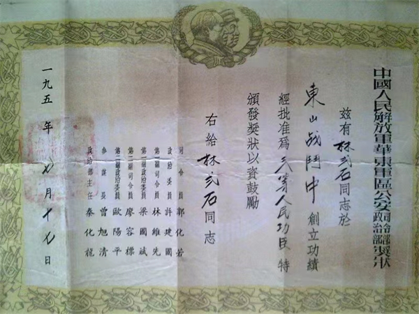 王耀增參加演練 “耀增的外公也是一名軍人,曾在1950年參加東山戰斗中榮立三等功,但是我們都不知道,直到去年他老人家去世我們整理遺物時才發現這張喜報。”王耀增的母親激動地說。