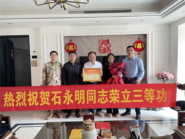 為現(xiàn)役軍人三等功獲得者石永明家屬送喜報(bào) 2月21日,送喜報(bào)小分隊(duì)來到云霄縣云陵鎮(zhèn)渡頭嘉園,為三等功獲得者石永明家屬頒發(fā)喜報(bào)、佩戴綬帶、送上鮮花及慰問金。縣退役軍人事務(wù)局領(lǐng)導(dǎo)與軍屬親切交談,詳細(xì)了解軍屬的生活近況,感謝他們?yōu)椴筷?duì)培養(yǎng)了一名新時(shí)代優(yōu)秀軍人,為國(guó)防事業(yè)輸送了一名優(yōu)秀人才。同時(shí),希望他們一如既往地支持和鼓勵(lì)石永明同志立足本職崗位、安心服役、服從命令、聽黨指揮,發(fā)揚(yáng)部隊(duì)光榮傳統(tǒng)、再創(chuàng)佳績(jī),再立新功。