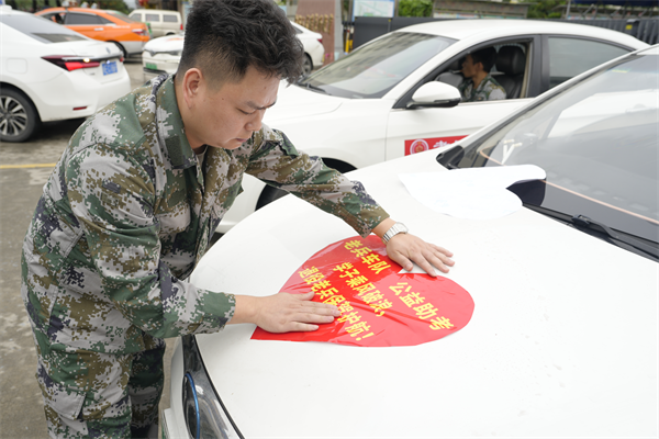 愛心車輛統一張貼“老兵車隊 公益助考”標識 “作為退役軍人,積極參與愛心送考是一件非常光榮的事情,老兵車隊承諾將為考生提供安全、便捷、周到的出行服務,同時預祝考生旗開得勝,金榜題名!”張曉翔在啟動儀式上說道。