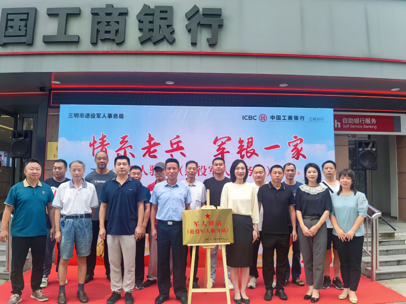 8月22日,中國工商銀行三明徐碧支行軍人驛站(退役軍人服務站)揭牌儀式在三元區徐碧支行網點舉行。三明市退役軍人事務局、中國工商銀行三明分行等相關單位領導共同為驛站揭牌。