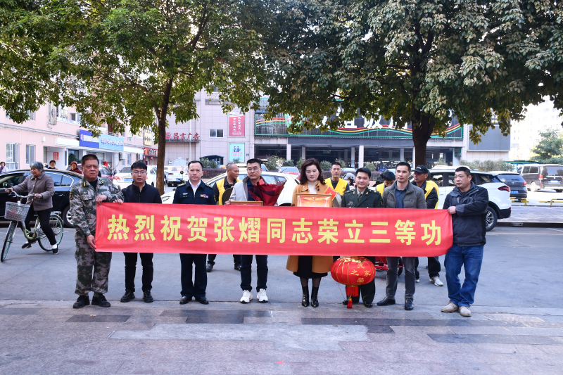 軍地領導與功臣視頻連線道喜 據(jù)悉,張曉燦,1989年3月出生,2007年9月入伍,現(xiàn)任陸軍某部科長。他出生于一個軍人家庭,其父親張民揚曾是位空軍,兩個舅舅一位是海軍,一位是武警。受家人影響,從小立志從軍報國。入伍之后,他立足本職崗位,扎實務實,履職盡責,成績突出,先后被表彰為優(yōu)秀學員、優(yōu)秀帶兵骨干、優(yōu)秀黨務工作者、優(yōu)秀共產(chǎn)黨員、優(yōu)秀基層干部,獲得6次嘉獎、1次三等功獎勵等多項榮譽。他一步步努力實現(xiàn)心中的夢想,用一個個榮譽為軍旗增色添彩,不斷豐富自己的人生價值。 “把橫幅拉起來,鑼鼓敲起來.....”當天,云霄縣云陵鎮(zhèn)萬城花園、建發(fā)半山御園、下坂村等地鑼鼓喧天、人潮攢動,熱鬧非凡。縣人武部部長李超、政委吳南華分別帶隊,縣退役軍人事務局、人武部政工科及鄉(xiāng)鎮(zhèn)、村(社區(qū))相關人員組成送喜報小分隊,熱熱鬧鬧將喜報送達軍屬家庭。 在鑼鼓喧天的喜慶聲中,送喜報小組為榮立三等功的現(xiàn)役軍人張曉燦、吳建寧、張熠等軍屬披綬帶,頒發(fā)喜報、送上慰問金與鮮花,向他們致以新年的問候和熱烈的祝賀。 “感謝黨和政府的關懷,感謝部隊對張曉燦的培養(yǎng),作為父母為此感到驕傲和自豪,會一如既往做好孩子堅強后盾,不辜負黨和人民的期望。”張曉燦的父親張民揚激動表示。