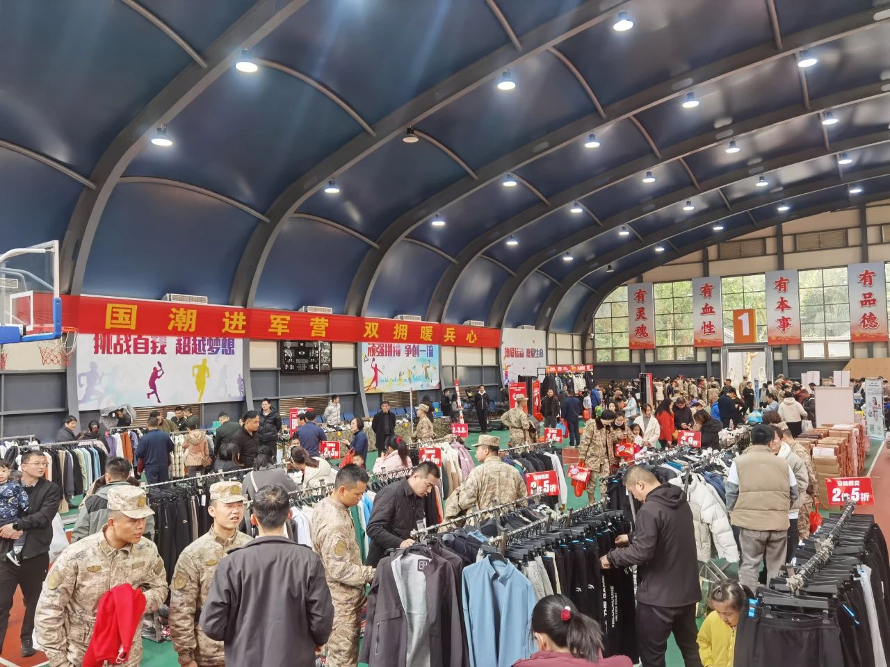 活動以“企業(yè)進軍營、惠及子弟兵”為主題,立足于“推介閩貨、質(zhì)優(yōu)價廉、服務(wù)官兵、促進消費”,安踏、361度、七匹狼、沃特、盼盼等擁軍企業(yè),共拿出百余款鞋服、健身、年貨產(chǎn)品等供軍人軍屬選購。省軍區(qū)領(lǐng)導,省退役軍人事務(wù)廳(省雙擁辦)、商務(wù)廳、文旅廳等單位負責人專程來到活動現(xiàn)場,與官兵一起感受濃濃的擁軍惠軍氛圍。 此次活動,吸引了省軍區(qū)及周邊友鄰單位近千余名軍人軍屬參加。 |