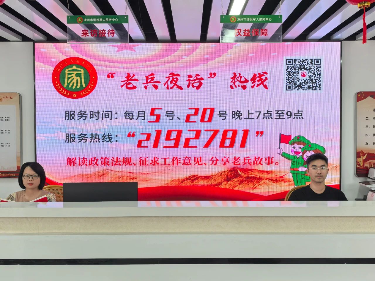 “你好!我的殘疾軍人證如何更換成地方的?另外我還想咨詢點社保繳納方面的問題。”3月5日晚6點50分,漳州市退役軍人服務(wù)中心大廳的熱線電話響起,負(fù)責(zé)值班的局辦公室主任、退役軍人李全常剛剛落座,就接到來自龍海區(qū)的優(yōu)撫對象王某的電話,李全常一邊接聽一邊請市退役軍人服務(wù)中心工作人員林碧云做好登記。當(dāng)夜,李全常值班到9點,共接到6個電話,分別來自薌城區(qū)、龍文區(qū)等,接聽內(nèi)容涵蓋優(yōu)待證辦理、情感交流、政策咨詢等方面。 隨著社會的快速發(fā)展,部分退役軍人在回歸地方生活后,可能會面臨諸如職業(yè)轉(zhuǎn)型、心理調(diào)適、融入社會等一系列問題。為體現(xiàn)黨和政府對退役軍人的關(guān)心關(guān)愛,更好地落實福建省退役軍人事務(wù)廳推出的“精準(zhǔn)服務(wù)工作模式”,漳州市退役軍人事務(wù)局經(jīng)過前期廣泛調(diào)研和摸排,決定從今年3月5日起,依托專屬退役軍人服務(wù)號“2192781”開通“老兵夜話”交流平臺,提供夜間服務(wù)熱線。“老兵夜話”服務(wù)熱線正是基于對這些問題的洞察而設(shè)立,該熱線將為退役軍人、軍人軍屬搭建起溝通交流的橋梁。 “有呼必應(yīng)、有問必答”。2023年11月,漳州市推出好記又有意義的專屬退役軍人服務(wù)熱線,推出以來廣受退役軍人、軍人軍屬好評。今年再次升級熱線功能,決定將每月5號和20號晚上7點至9點作為夜間服務(wù)時間,服務(wù)對象以漳州市退役軍人及其他優(yōu)撫對象為主,部隊官兵也在服務(wù)范圍內(nèi)。服務(wù)內(nèi)容包括政策咨詢、就業(yè)創(chuàng)業(yè)、撫恤優(yōu)待、權(quán)益維護、心理服務(wù)等方面的問題。此外,還包括同老兵情感交流、分享軍旅故事等。 據(jù)介紹,為更好提高精準(zhǔn)服務(wù)質(zhì)量,服務(wù)團隊由該局黨組成員、副局長宋克勤負(fù)責(zé)指導(dǎo),服務(wù)人員均是經(jīng)過考核、評估并由在局機關(guān)及直屬單位工作滿兩年以上的人員組成,其中不乏經(jīng)驗豐富的退役軍人、心理咨詢師、就業(yè)指導(dǎo)團隊等。當(dāng)天夜間值班是李全常,部分涉及其他業(yè)務(wù)科室的咨詢問題,他和林碧云都一一登記在冊,待第二天上班時由相關(guān)科室負(fù)責(zé)人聯(lián)系當(dāng)事人,給予正面回復(fù)。 這樣一來,在輕松的氛圍中,退役軍人可以毫無保留地分享自己的經(jīng)歷與困惑。對于面臨就業(yè)困境的退役軍人,服務(wù)人員會結(jié)合當(dāng)下就業(yè)形勢,為他們量身定制職業(yè)規(guī)劃,并提供實用的求職技巧指導(dǎo);而對于心理上存在壓力的老兵,則通過耐心傾聽與專業(yè)疏導(dǎo),幫助他們緩解心理負(fù)擔(dān)。
