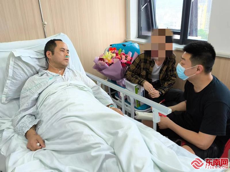 “你很勇敢!自己受傷了還救人!”5月3日下午,前來醫院看望慰問傷者的相關領導來到謝文新所在病房,了解他的傷情和治療恢復情況,對他自己受傷還全力參與救援的行為給予特別肯定和表揚。