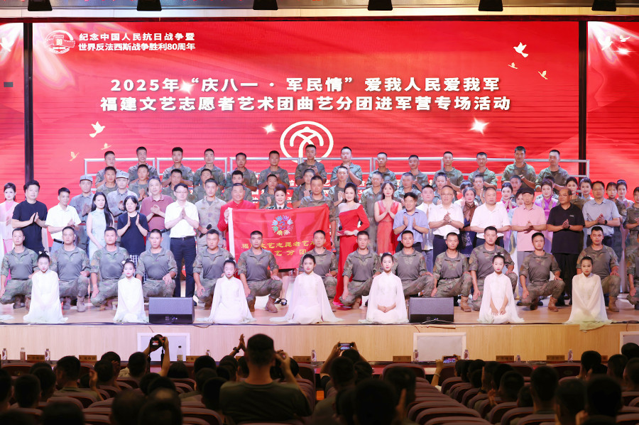 為紀(jì)念中國(guó)人民抗日戰(zhàn)爭(zhēng)暨世界反法西斯戰(zhàn)爭(zhēng)勝利80周年,慶祝中國(guó)人民解放軍建軍98周年,用文藝的形式弘揚(yáng)偉大抗戰(zhàn)精神,唱響“愛我人民愛我軍”的時(shí)代強(qiáng)音,持續(xù)推動(dòng)優(yōu)質(zhì)文藝資源直達(dá)基層活動(dòng)深入開展。近日,由福建省文聯(lián)指導(dǎo),福建省曲藝家協(xié)會(huì)、平潭綜合實(shí)驗(yàn)區(qū)文聯(lián)、駐閩部隊(duì)某部聯(lián)合主辦,福建文藝志愿者藝術(shù)團(tuán)曲藝分團(tuán)等單位承辦的“慶八一·軍民情”——福建文藝志愿者藝術(shù)團(tuán)曲藝分團(tuán)進(jìn)軍營(yíng)專場(chǎng)活動(dòng)在平潭綜合實(shí)驗(yàn)區(qū)舉行。省文聯(lián)主席陸開錦,省文聯(lián)黨組成員、秘書長(zhǎng)許瑞生,平潭綜合實(shí)驗(yàn)區(qū)黨工委委員、區(qū)公安局局長(zhǎng)陳毅坤,駐閩部隊(duì)某部領(lǐng)導(dǎo),省曲協(xié)主席陳曉嵐、副主席陳成凱、駐會(huì)秘書長(zhǎng)陳湧,平潭綜合實(shí)驗(yàn)區(qū)文聯(lián)黨組書記、主席胡東榮及部隊(duì)官兵代表、共建單位、文藝志愿者等近500人參加專場(chǎng)活動(dòng)。
