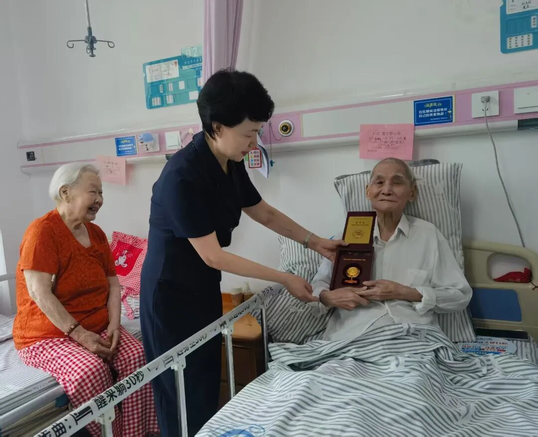 閩西的抗戰(zhàn)英烈犧牲安葬地多在省外,出生地的抗戰(zhàn)烈士紀(jì)念設(shè)施較少,為提高宣傳效果,龍巖市退役軍人事務(wù)局積極與抗日英烈犧牲安葬地所在退役軍人事務(wù)局聯(lián)系,開(kāi)展代祭掃、聯(lián)合紀(jì)念英烈等活動(dòng)。9月1日,在全國(guó)首批著名抗日英烈陳明的故居,與陳明犧牲安葬地山東臨沂華東革命烈士陵園視頻連線(xiàn)開(kāi)展“千里同山河 共上一堂課”的活動(dòng)。兩地小學(xué)生共講英烈故事,共學(xué)英烈知識(shí),跨越時(shí)空追思英烈。在著名抗戰(zhàn)英烈廖海濤的家鄉(xiāng)中學(xué)舉辦紀(jì)念抗戰(zhàn)勝利80周年抗戰(zhàn)英烈事跡進(jìn)校園活動(dòng),宣講員通過(guò)講述抗戰(zhàn)英烈陳明、廖海濤、羅化成英勇抗日的故事,激發(fā)了學(xué)生們的愛(ài)國(guó)情、報(bào)國(guó)志。同時(shí),還編排了紀(jì)念廖海濤烈士的情景劇《鐵血丹心—廖海濤》,生動(dòng)再現(xiàn)廖海濤烈士英勇無(wú)畏的一生。抗戰(zhàn)勝利紀(jì)念日前后,全市共組織開(kāi)展抗戰(zhàn)英烈紀(jì)念活動(dòng)20余場(chǎng),受眾1.2萬(wàn)人。央視新聞、央視《勝利日》、人民日?qǐng)?bào)客戶(hù)端、中國(guó)新聞網(wǎng)、福建新聞聯(lián)播等中央、省級(jí)媒體都相繼報(bào)道了龍巖市開(kāi)展抗戰(zhàn)英烈紀(jì)念活動(dòng)的情況。 強(qiáng)化人文關(guān)懷 開(kāi)展關(guān)愛(ài)烈屬走訪(fǎng)慰問(wèn)活動(dòng) 為表達(dá)對(duì)抗戰(zhàn)英烈家屬的深切關(guān)懷與崇高敬意,龍巖市退役軍人事務(wù)局部署各縣(市、區(qū))、各鄉(xiāng)鎮(zhèn)開(kāi)展關(guān)愛(ài)抗戰(zhàn)英烈家屬活動(dòng),以實(shí)際行動(dòng)傳遞溫暖,弘揚(yáng)抗戰(zhàn)精神。 各縣(市、區(qū))、各鄉(xiāng)鎮(zhèn)退役軍人服務(wù)站工作人員分組到烈屬家中走訪(fǎng),與烈屬們親切交談,詳細(xì)詢(xún)問(wèn)他們的生活狀況、身體情況和困難需求,傾聽(tīng)他們講述抗戰(zhàn)英烈們的英勇事跡,對(duì)烈士們?yōu)閲?guó)家和人民所做出的巨大犧牲表達(dá)了誠(chéng)摯感謝,讓烈屬們感受到了來(lái)自黨和政府及社會(huì)各界的尊重與關(guān)愛(ài)。同時(shí),向烈屬們宣傳《軍人撫恤優(yōu)待條例》《烈士褒揚(yáng)條例》等褒揚(yáng)撫恤政策,落實(shí)落細(xì)各項(xiàng)撫恤優(yōu)待政策措施,切實(shí)維護(hù)烈屬合法權(quán)益。對(duì)抗戰(zhàn)烈屬情況進(jìn)行調(diào)查摸底,推薦廖海濤烈士的外孫女和邱子華烈士的孫子參加紀(jì)念中國(guó)人民抗日戰(zhàn)爭(zhēng)暨世界反法西斯戰(zhàn)爭(zhēng)勝利80周年大會(huì),在天安門(mén)廣場(chǎng)現(xiàn)場(chǎng)觀禮九三閱兵。抗戰(zhàn)紀(jì)念日前夕,龍巖市退役軍人事務(wù)局還向抗戰(zhàn)老兵頒發(fā)“中國(guó)人民抗日戰(zhàn)爭(zhēng)勝利80周年”紀(jì)念章。