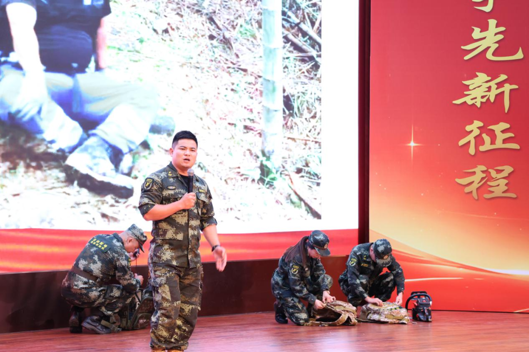 2024年全國模范退役軍人、龍巖市上杭縣古田軍號公益救援突擊隊隊長凌徵鵬作宣講