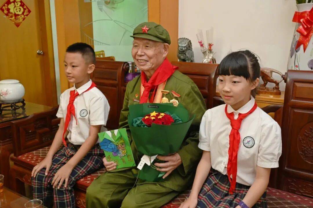 ▲“烽火記憶照前路 青春礪劍啟新程”的主題活動中,張宜順向學生們講述烽火歲月。(漳州市退役軍人事務局 供圖) 傳承精神: 記錄歷史刻不容緩 2025年,正值中國人民抗日戰爭暨世界反法西斯戰爭勝利80周年。5月,漳州市退役軍人事務局聯合漳州軍分區政治工作處、市委老干部局開展“搶救性挖掘抗戰老兵事跡”專項行動。“每次推開老兵家門,都像打開一扇即將關閉的歷史之窗。”漳州市退役軍人事務局相關負責人不禁感慨道。今年初,一份沉甸甸的數據如同警鐘:漳州全市登記在冊的抗戰老兵僅剩15人,平均年齡逾九旬。4月,又一位老兵溘然長逝,搶救記憶工作刻不容緩。 張宜順正是登記在冊的抗戰老兵之一,也是少數能夠清晰講述往事的親歷者。這位精神矍鑠、樂觀健談的老兵積極配合著多維度的記錄:面對面深度訪談,錄音錄像留存,拍攝佩戴紀念章的標準照及生活照,提供勛章、證件、照片、書信等歷史實物得以數字化保存,積極協助相關部門千方百計留存歷史記憶。