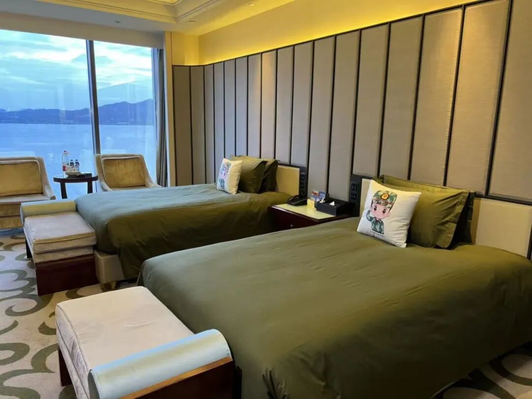 驛站推出擁軍主題客房,擺放擁軍宣傳手冊及軍旅特色物品,營造“兵至如歸”的溫馨氛圍?,F役軍人、退役軍人及同行家屬,享受機場、動車站免費接送服務并按最低協議價優先辦理入住。入住期間,還可免費使用游泳池及戶外溫泉公園。此外,優待對象在酒店訂婚、結婚免收場地費,并贈送婚房,喜宴享受專屬折扣優惠。