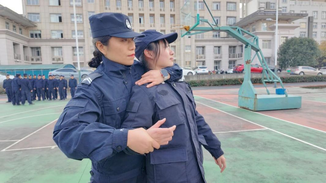 耿惠敏(左)訓練指導隊員技能 作為大隊里少有的女性訓練教官,耿惠敏將部隊訓練經驗與輔警實戰需求深度融合,用“剛柔并濟”的方式帶出一批批合格隊員。 “惠敏姐訓練時特別嚴,但休息時就像換了個人。有一次我動作老是做不好,她晚上還專門發視頻給我講解。”隊員江麗華說?!拔以诓筷牬宋迥?,知道訓練場上沒有‘差不多’,只有‘標準’?!惫⒒菝粽Z氣溫和地說,“訓練多流汗,執勤才能少擔險。我們輔警也是法治隊伍的重要組成部分,每一個動作都關系到群眾的安全?!?/p> 訓練中,耿惠敏會主動和隊員聊訓練難點、緩解心理壓力,她用自己“不怕吃苦、迎難而上”的經歷鼓勵大家,為嚴苛訓練送去溫暖力量。 街頭巷尾的“腳步”與“溫情” 晚上八點,耿惠敏穿上反光背心,手持對講機,與隊友一同走上街頭。她一邊巡視沿街商鋪,一邊向記者介紹:“巡邏不只是走路,更要眼觀六路、耳聽八方。”