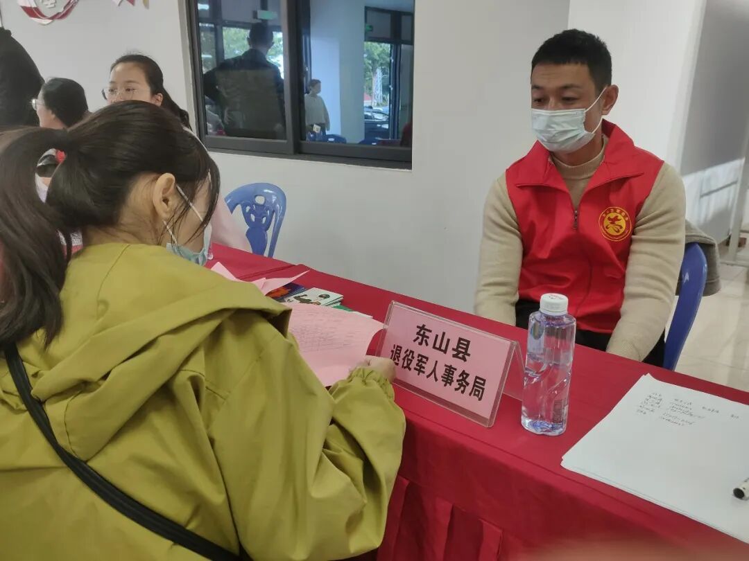 12月9日上午,漳州市東山縣市民廣場零工市場服務中心氣氛熱烈,“工會送崗·樂業東山”就業援助專場招聘會在此舉行。本次招聘會由東山縣總工會主辦,東山縣退役軍人事務局主動靠前服務,聚焦退役軍人及隨軍家屬就業需求,攜手20家軍創企業設立招聘專崗,精準對接退役軍人、軍屬穩崗樂業。