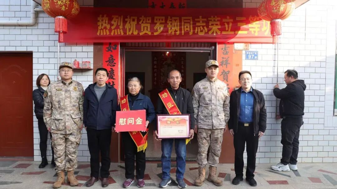12月26日,三明市明溪縣城關(guān)鄉(xiāng)、蓋洋鎮(zhèn)鑼鼓喧天、鞭炮齊鳴,由縣人武部、縣民政和人力資源社會保障局(縣退役軍人事務(wù)局)組成的送喜報隊伍,深入城關(guān)鄉(xiāng)坪埠村,蓋洋鎮(zhèn)蓋洋村、楊地村、常坪村,為4戶榮立三等功的現(xiàn)役軍人家庭送去立功喜報,讓軍人軍屬共享榮耀時刻,在全縣營造“一人立功、全家光榮”的濃厚氛圍。 伴隨著送喜鼓點與鞭炮聲,送喜報工作隊先后抵達(dá)各立功軍人家中。工作隊為軍人家屬佩戴上象征榮譽的綬帶,宣讀立功喜報,介紹軍人在部隊的優(yōu)異表現(xiàn)和立功事跡,并將慰問金送到家屬手中。軍人家屬們難掩激動與自豪之情,紛紛表示將繼續(xù)做好軍人的堅強后盾,鼓勵親人在部隊安心服役、刻苦訓(xùn)練。
