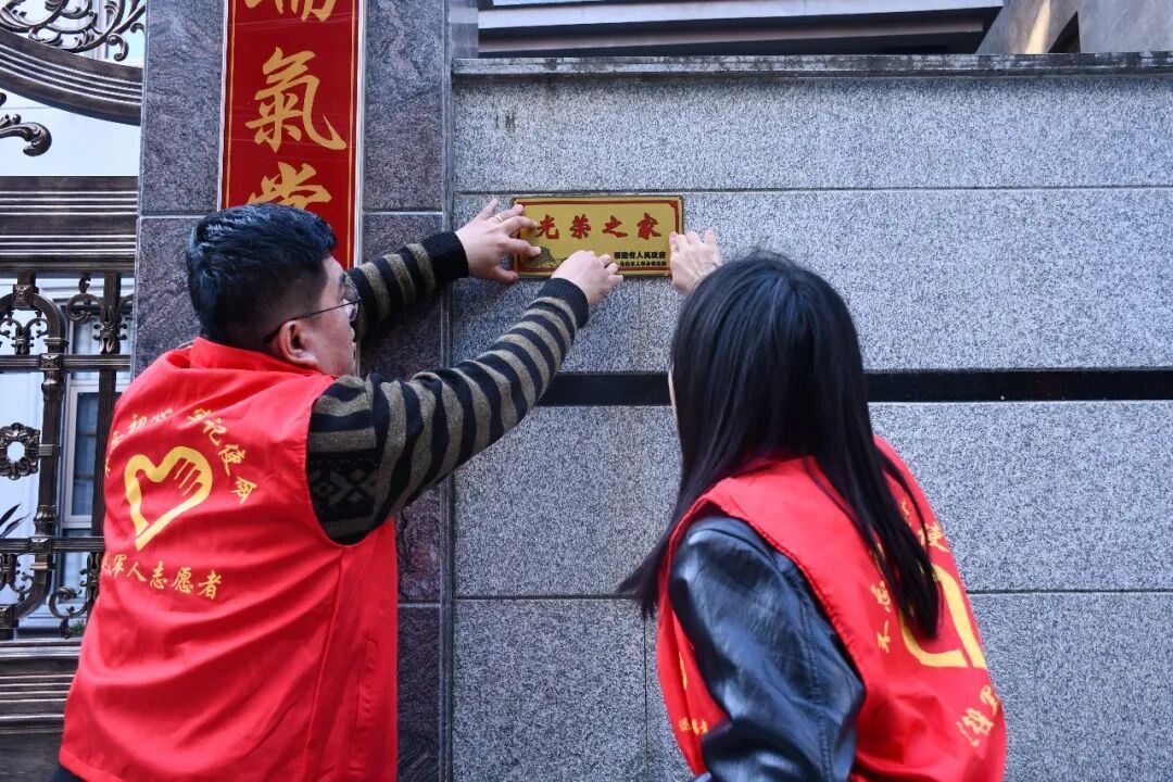 截至12月25日,云霄縣已完成全縣摸底排查與申請登記工作,懸掛安裝正穩步推進,目前已為1000余戶完成牌匾煥新,計劃在2026年春節前全面完成。 “這牌子掛上門,心里頭熱乎乎的!”在云霄縣開發區馬山村,88歲的帶病回鄉老兵張大爺,因腿腳不便,家中舊牌早已褪色模糊。了解情況后,工作人員主動上門,輕輕取下舊牌,仔細擦拭墻面,將嶄新的光榮牌平整掛上,讓老人足不出戶就感受到關懷。