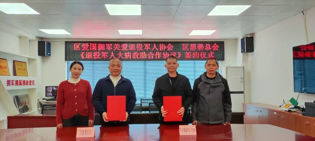 1月15日,龍巖市永定區愛國擁軍關愛退役軍人協會與永定區慈善總會在區退役軍人事務局四樓會議室正式簽訂《退役軍人大病救助合作協議》。