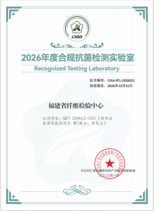 近日,中關村匯智抗菌新材料產業技術創新聯盟(CIAA)正式公布“2026年度合規抗菌檢測實驗室”名錄,福建省纖維檢驗中心憑借出色的能力再次成功入選。 自2023年首次參與CIAA組織的抗菌性能測試比對活動以來,福建省纖檢中心連續三屆取得“滿意”的比對結果,檢驗檢測能力水平穩定保持在聯盟推薦的合規實驗室前列。中心微生物實驗室歷經二十余年穩定運行,具備國際一流的檢驗設備和完善的檢測體系,且具備抗菌產品檢測的CMA及CNAS雙重資質,檢測能力全面覆蓋紡織品、紙制品、一次性衛生用品、鞋類及防護用品等多個領域。 隨著時代的發展,市場對抗菌產品的質量與安全性提出了更高要求。未來中心將持續加強微生物實驗室的體系建設與管理,持續提升抗菌性能檢驗的技術水平,為相關企業的產品安全與質量管控提供堅實可靠的技術支撐。