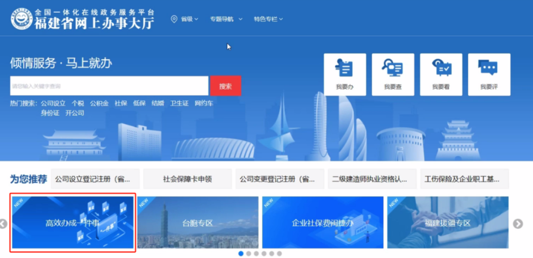 或通過福建省網上辦事大廳 (https://zwfw.fujian.gov.cn/)找到高效辦成一件事專區,在服務專區的法人服務,找到企業數據填報一件事,點擊立即辦理。