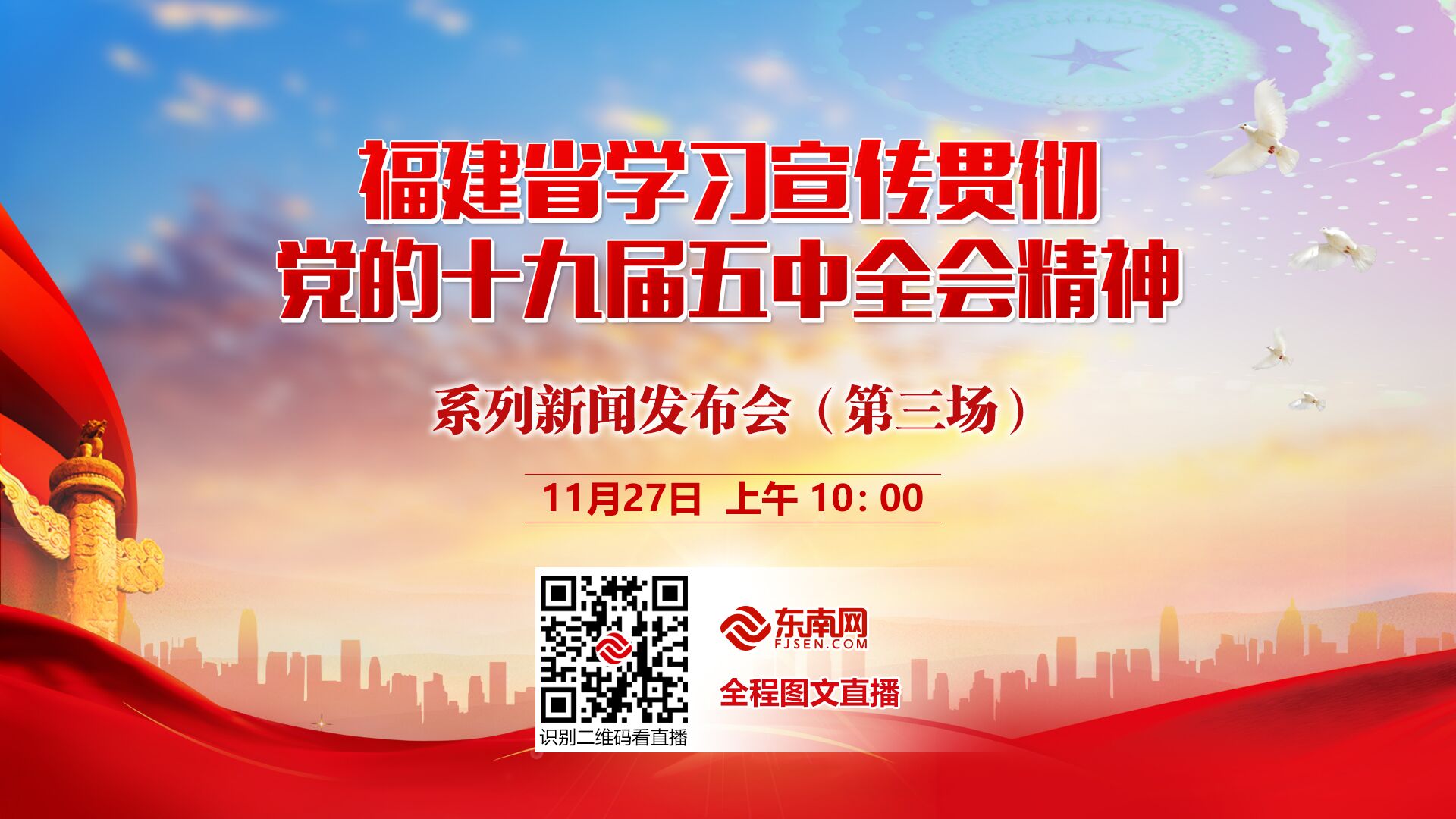 福建省政府新聞辦公室于11月27日上午10:00召開福建省學(xué)習(xí)宣傳貫徹黨的十九屆五中全會精神系列新聞發(fā)布會(第三場)。[詳細]