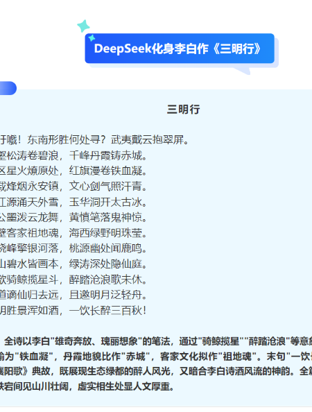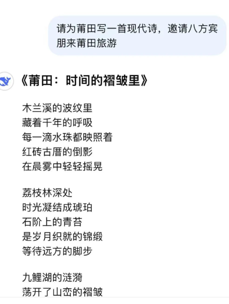 “我用 AI 贊福建” 征集活動正式開啟,無論是詩歌、文字還是歌詞,只要是你運用 AI 創作,飽含對福建熱愛的文學作品,都可以在這里綻放光彩。期待大家用獨特的創意,讓 AI 與福建碰撞出絢爛的火花,共同譜寫一曲對福建的贊歌 。