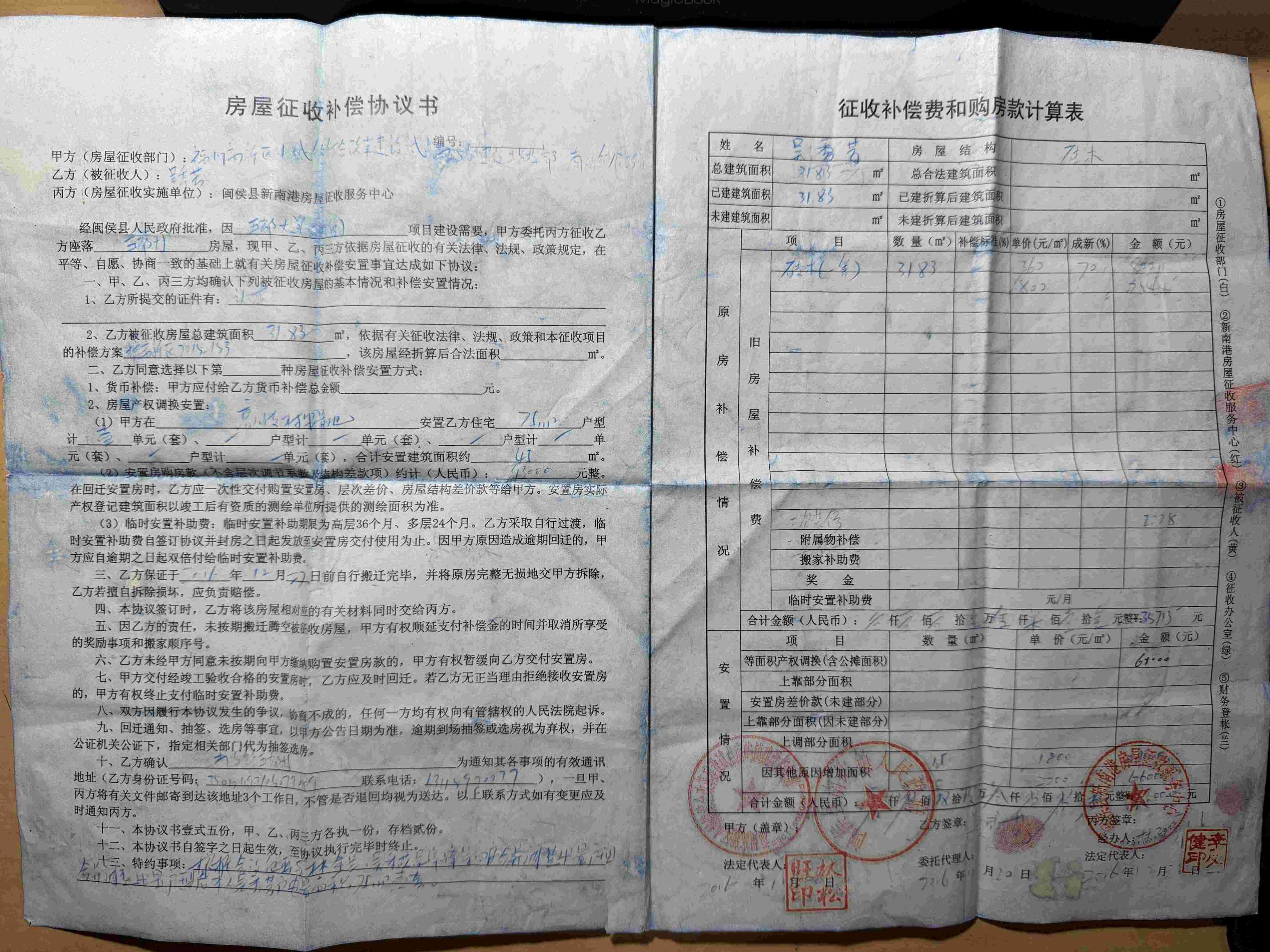 南嶼鎮五都村留臂53號的陳先生告訴記者,2016年京誠公館項目征遷,其弟兄二人的房子被拆,每人換了一套135平方的安置房。如今7年過去了,協議中約定的高岐安置房早已回遷入住,陳先生一家卻沒有得到任何通知。“去問村里,村里說當時是閩侯拆遷辦做的,現在是高新區在安排房子;我們又去高新區政府查詢,人家說根本沒有這個拆遷項目傳上去,應該還在鎮里面;找鎮里,鎮里又說要問閩侯新南拆遷辦。而這個拆遷辦呢,今年在這里,明年在那里,現在在什么地方都不知道。打電話問呢,說高岐安置房已經沒了,其他問題應付幾句就掛了,最終還是沒結果……”