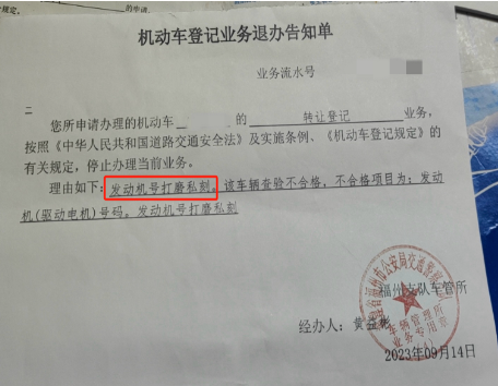 近日,福清市民袁先生向《直通屏山》反映,他購買的二手車發動機號被私刻,平潭、福州兩地車管部門都告知不能辦理過戶登記,而法院判決要他履行購車合同完成車輛過戶,令他左右為難。